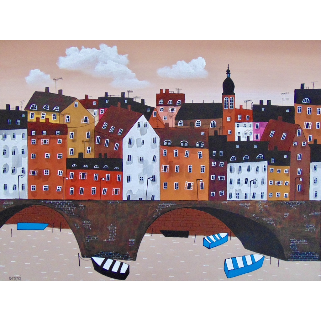 Obraz, který spojuje.Tiché barvy, klidná hladina, most mezi sny a skutečností. Zavěste si do prostoru kousek pokoje – místo, kde se zastaví čas.